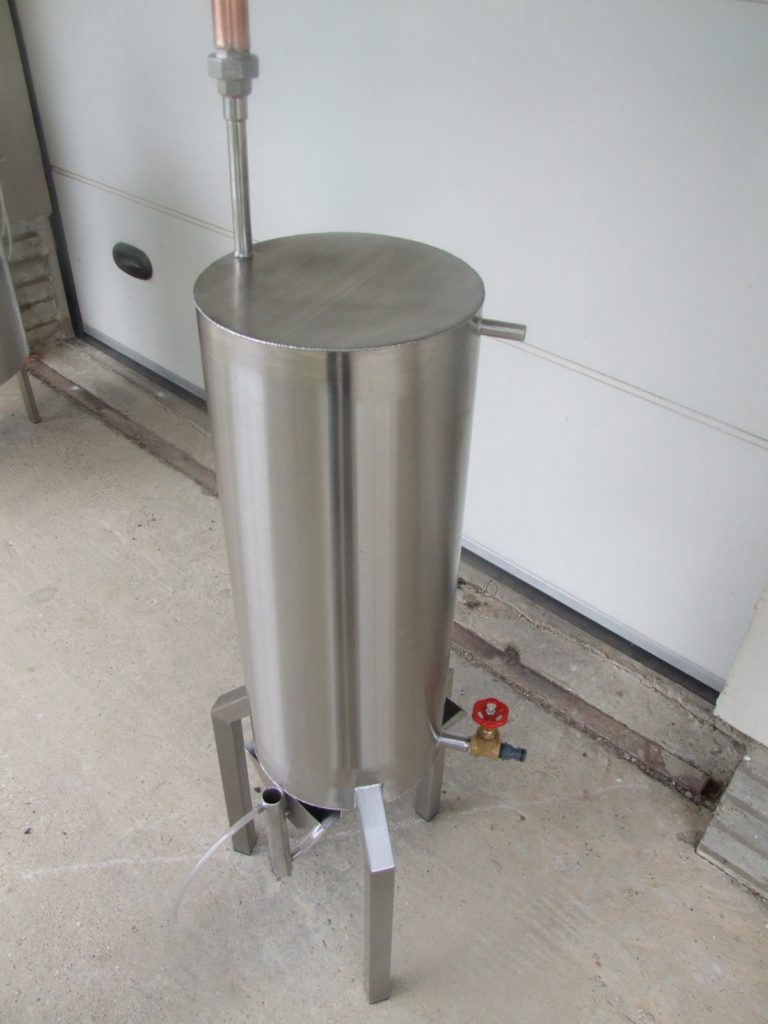 Rozsdamentes tartály – vörösréz sisak és páracső.