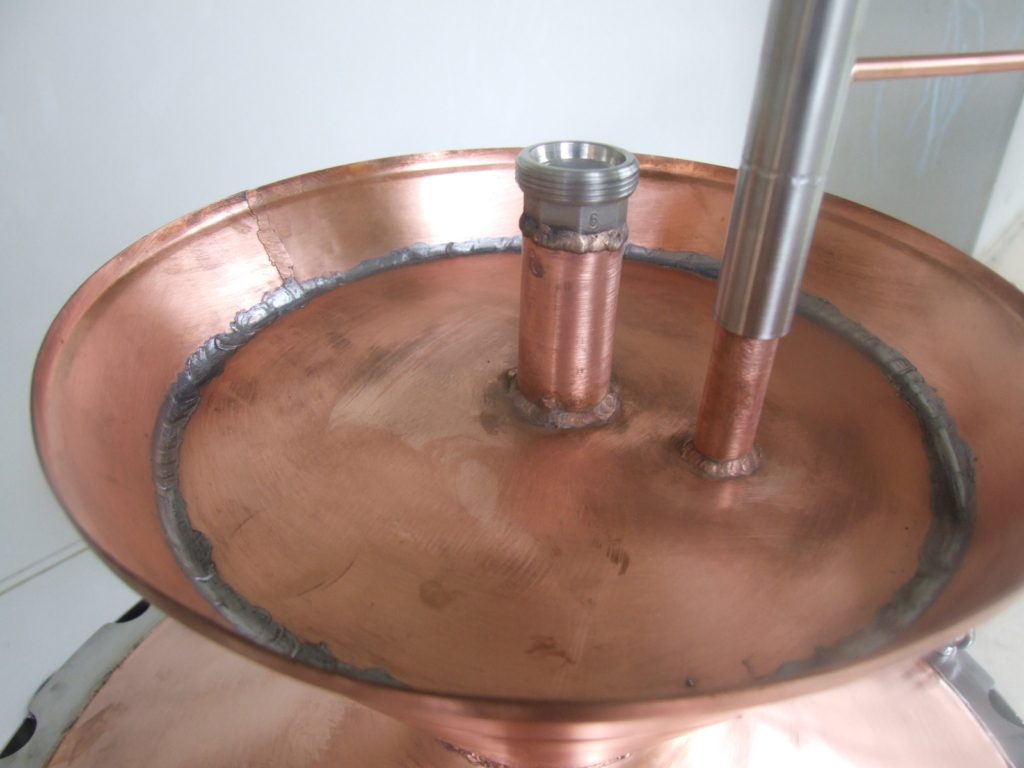 Sisak tetején Pistorius tányér (vízhűtéses deflegmátor).